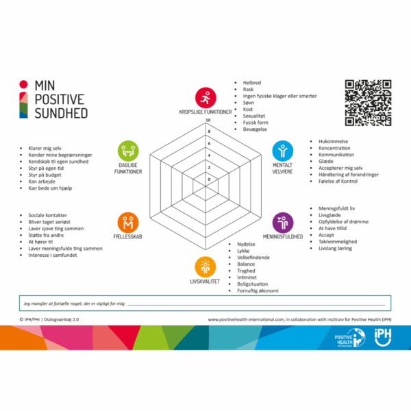 IPH stimulates working with Positive Health and advises professionals and interested parties to get started with the tools and methods that have been developed. To provide this, iPH offers files of the spider web of Positive Health in downloadable files. You can use the iPH tools in your own communication, when you refer to Positive Health. Please find the downloads in English, German, French, Icelandic, Spanish, Japanese, Danish and Papiaments. They are created by iPH in collaboration with Positive Health international.