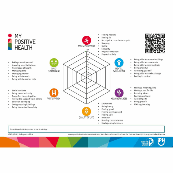 *Our materials are copyrighted and may only be used with acknowledgement of the source. It is not allowed to edit the spider web of Positive Health to your own liking or to copy the digital questionnaire to your own digital format.