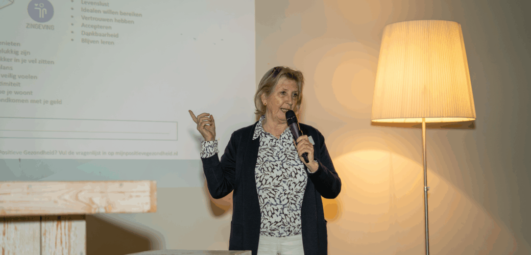 Machteld Huber (iPH) stond tijdens de bijeenkomst stil bij de ‘Laatste 1000 dagen’: een symbolische levensfase van geven én ontvangen. “Lichamelijk ouder worden is onvermijdelijk,” zei ze. “De vraag is: hoe kun je dat gelukkig doen en tegelijk een traject vol zwaarte voorkomen?”